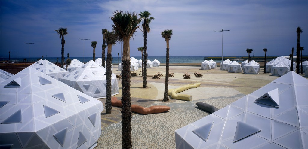 La proposta tracta d’habilitar el Parc del Nord Est del Fòrum per la realització d’uns campaments de grups de nens d’arreu del món per tandes de deu dies durant els quatre mesos que durava el Fòrum. El projecte habilita uns locals amb el programa comunitari (serveis, cuina, sala polivalent) proposant un terra flotant i una façana ventilada amb plaques de policarbonat ondulat a la franja superior i unes grans balconeres corredisses que permeten estar totalment obertes fent que l’espai funcioni com a simple “cobert”. La franja inferior de la façana dels locals és de plaques de cartró-guix hidròfug amb un acabat de pintura de pissarra que permet que els nens interactuïn amb l’edifici.