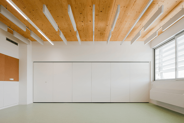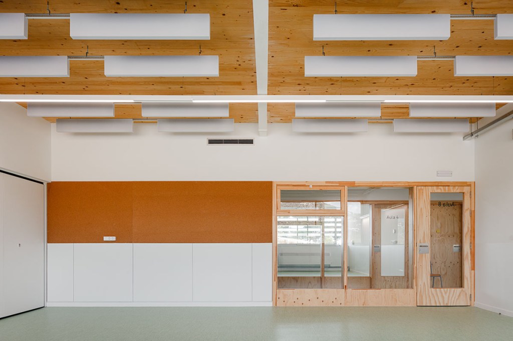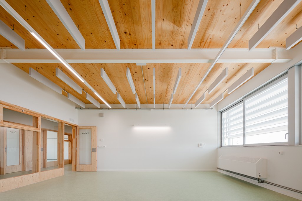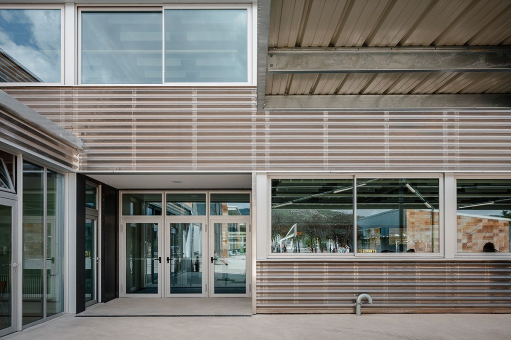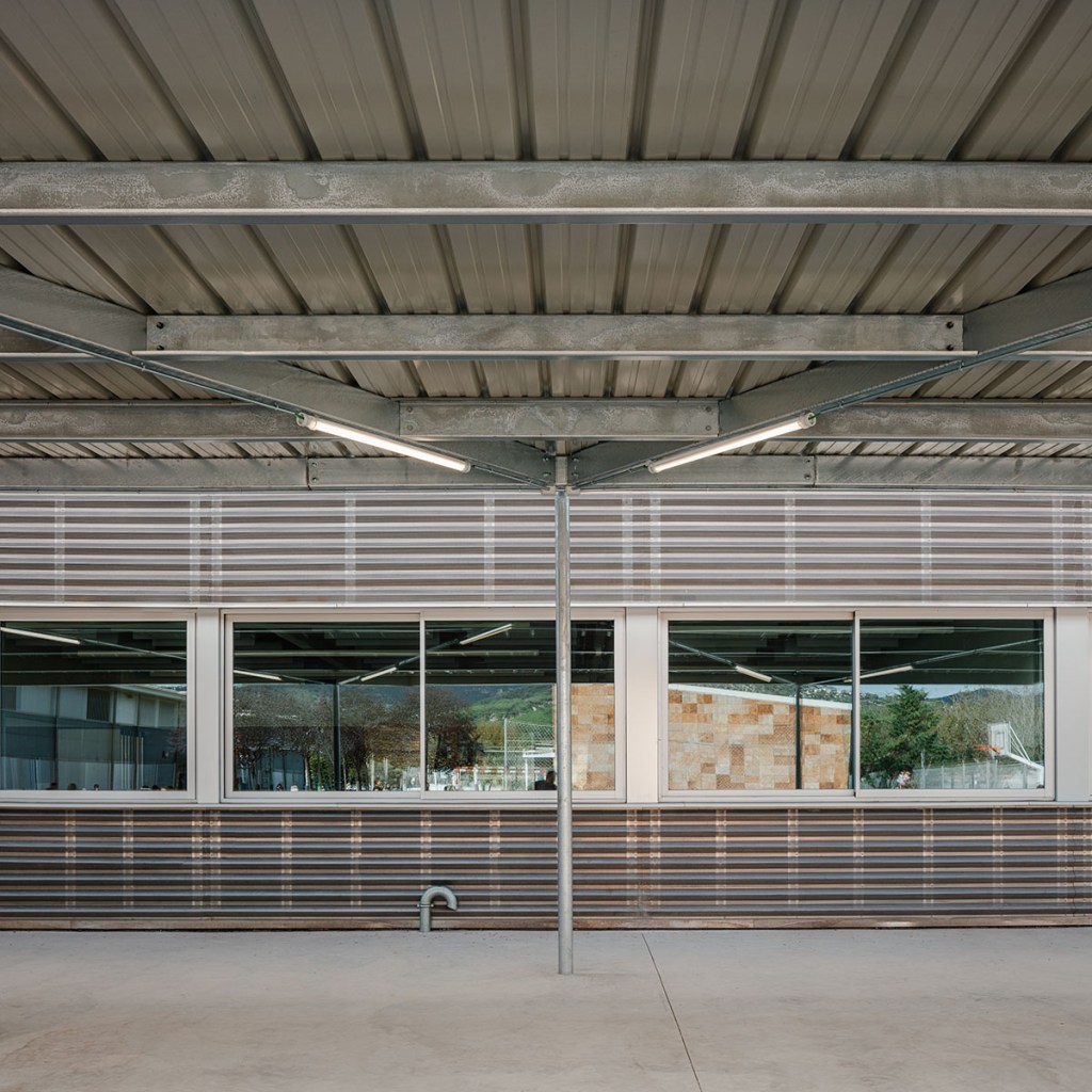 A la planta baixa, una pèrgola senzilla complementa l’ampliació, oferint un espai exterior protegit que millora el confort dels usuaris. Aquesta intervenció respon a les noves necessitats educatives de l’escola.