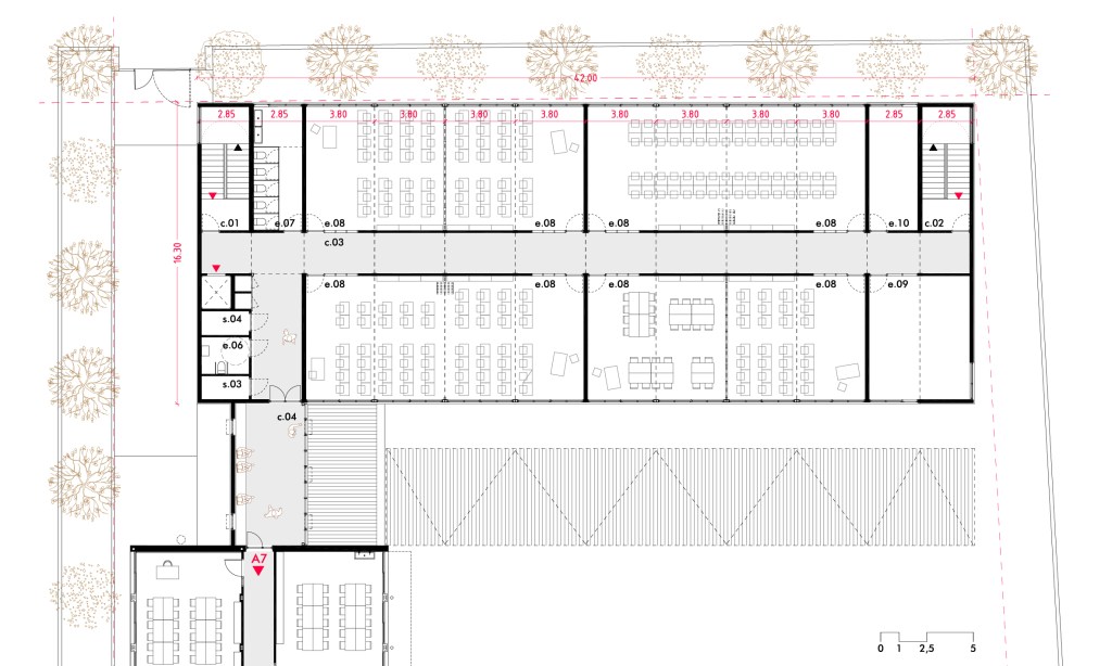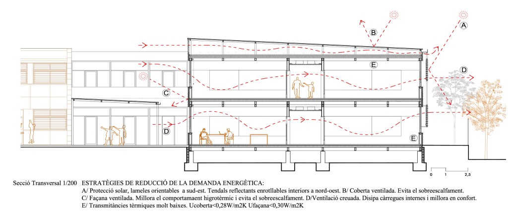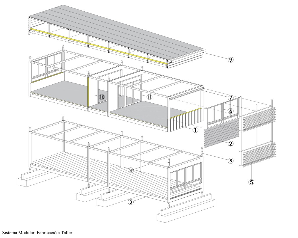 El projecte es basa en un sistema constructiu modular que optimitza la construcció i permet una gran flexibilitat en l’ús dels espais.