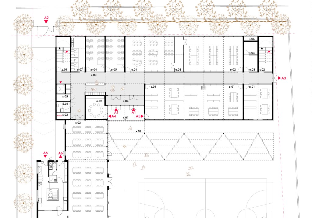 Les ampliacions son geomètricament senzilles, i es col.loquen de la manera més òptima per a connectar-se amb les escoles existents, per ampliar-les fins a Escola-Institut.